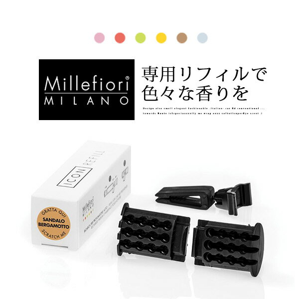車用 芳香剤 ミッレフィオーリ 交換用 詰め替え 香水 消臭 フレグランス ホワイトムスク バニラ アロマ シトラス フレッシュ イタリア製 カスタム 軽自動車 普通車 香料 オシャレ セレブ 汎用 置物 インテリア フロア 室内 車内 エアコン 正規品 リフィル ICON 車 消臭